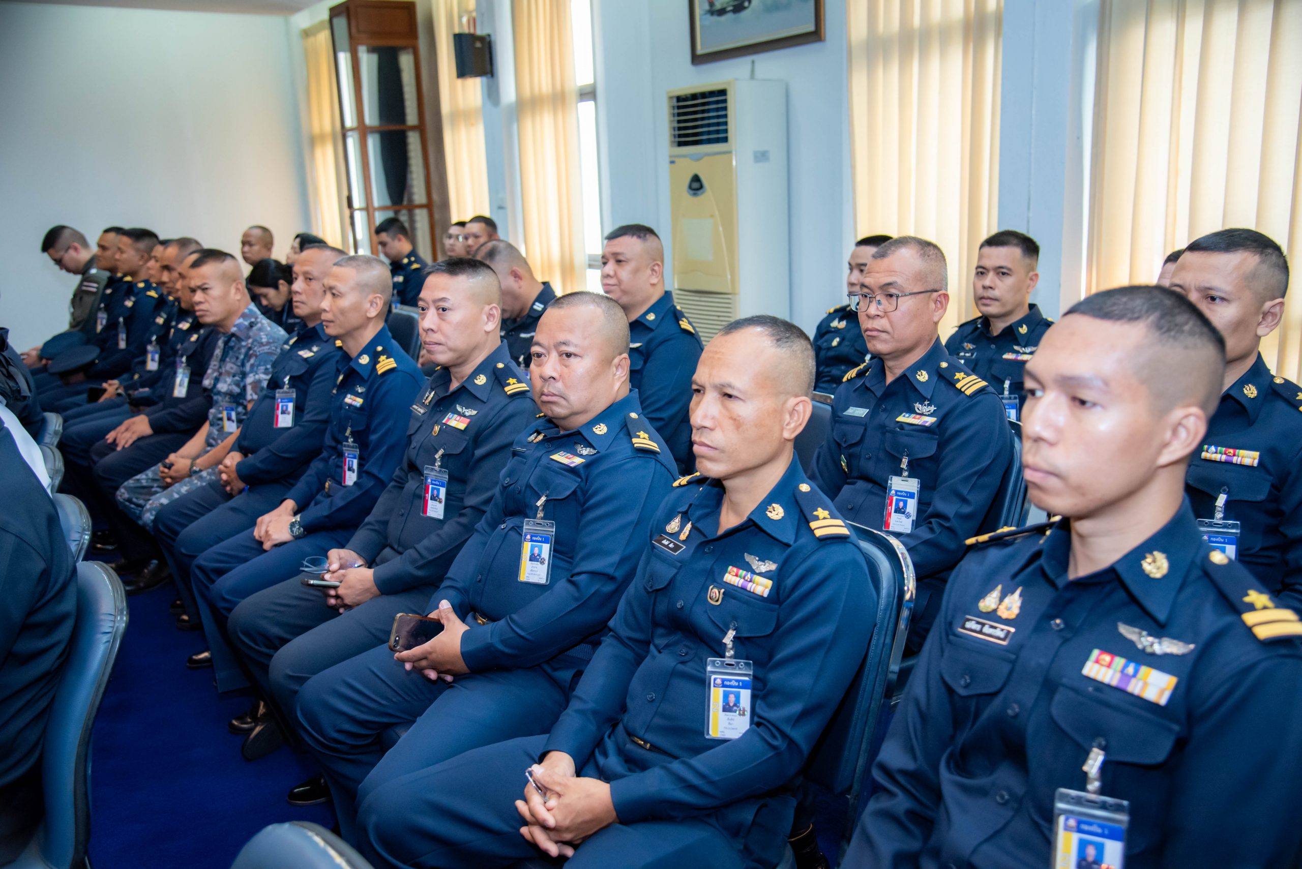 พลอากาศตรี อัครพล ทองสุรเดช รองเจ้ากรมสื่อสารอิเล็กทรอนิกส์ทหารอากาศ เป็นประธานพิธีเปิดโครงการจัดอบรมความรู้ด้านนิรภัยภาคพื้นให้กับผู้รับผิดชอบงานนิรภัยภาคพื้น กรมสื่อสารอิเล็กทรอนิกส์ททหารอากาศ ประจำปีงบประมาณ ๖๘ โดยมีผู้รับผิดชอบงานนิรภัยภาคพื้นของหน่วยเข้าร่วมการอบรม ในวันอังคารที่ ๓ ธันวาคม ๒๕๖๗ เวลา ๐๘.๐๐ – ๑๒.๐๐ น. ณ ห้องประชุมสื่อสารอิเล็กทรอนิกส์ ๓